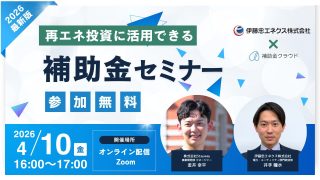 【4/10(金)16:00開催】伊藤忠エネクス共催 再エネ投資に活用できる補助金セミナー(オンライン・無料)