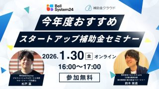 【1/30(金)16:00~17:00】ベルシステム24共催「今年度おすすめスタートアップ補助金セミナー」