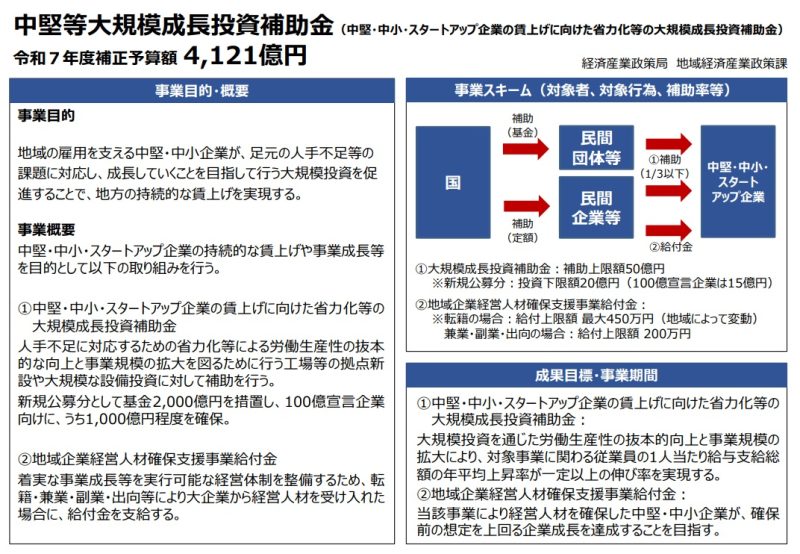「中堅・中小・スタートアップ企業の賃上げに向けた省力化等の大規模成長投資補助金」とは
