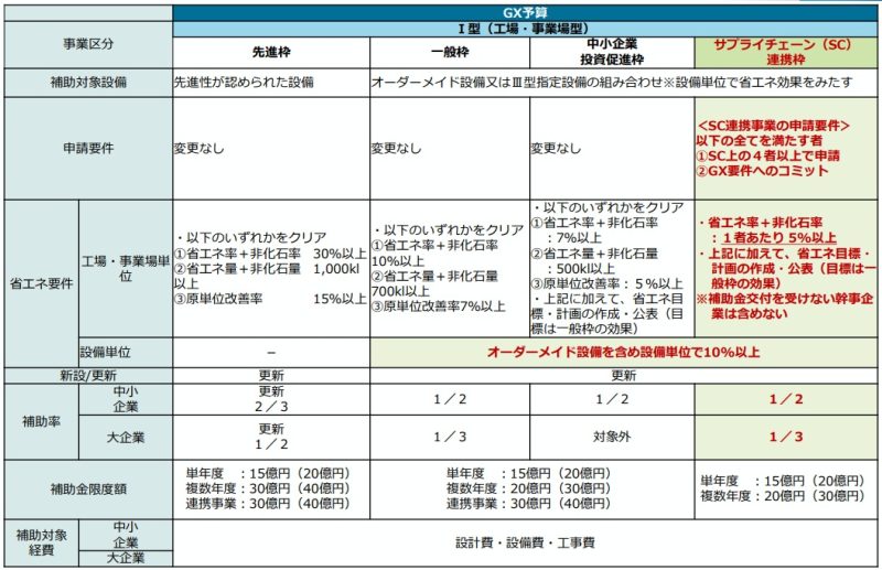 (Ⅰ)工場・事業場型では、これまでの3つの枠に加えて、新たに「サプライチェーン(SC)連携枠」を新設します。