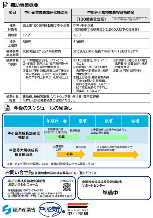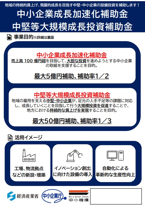 出典:中小企業成長加速化補助金・中堅等大規模成長投資補助金 チラシ