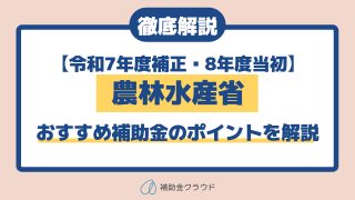 【令和7年度補正・8年度当初】農林水産省|おすすめ補助金のポイントを解説 ※記事内容は、記事更新日時点の情報です。最新の情報は、必ず省庁や自治体の公式HPをご確認ください。 0.リード文 資材価格の高騰、人手不足、設備の老朽化など、農林水産業を取り巻く経営環境は厳しさを増しています。現状を改善すべく、国は「農... 公開日2026年4月01日 更新日 Stayway / メディア事業部