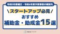 スタートアップがつかえる補助金・助成金15選!令和5年度補正・令和6年度予算事業の紹介も...※記事内容は、記事更新日時点の情報です。最新の情報は、必ず省庁や自治体の公式HPをご確認ください。 スタートアップ企業によるイノベーション創出は、今後の日本の産業競争力強化に向けて重要な役割を担って...